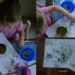 - Wenn ihr möchtet, gebt ihr nun vorsichtig ein paar Tropfen Lebensmittel- oder Seifenfarbe zu. Ihr beginnt mit 2 – 3 Tropfen, verrührt alles und gebt weitere Tropfen zu, falls ihr eine intensivere Färbung möchtet.